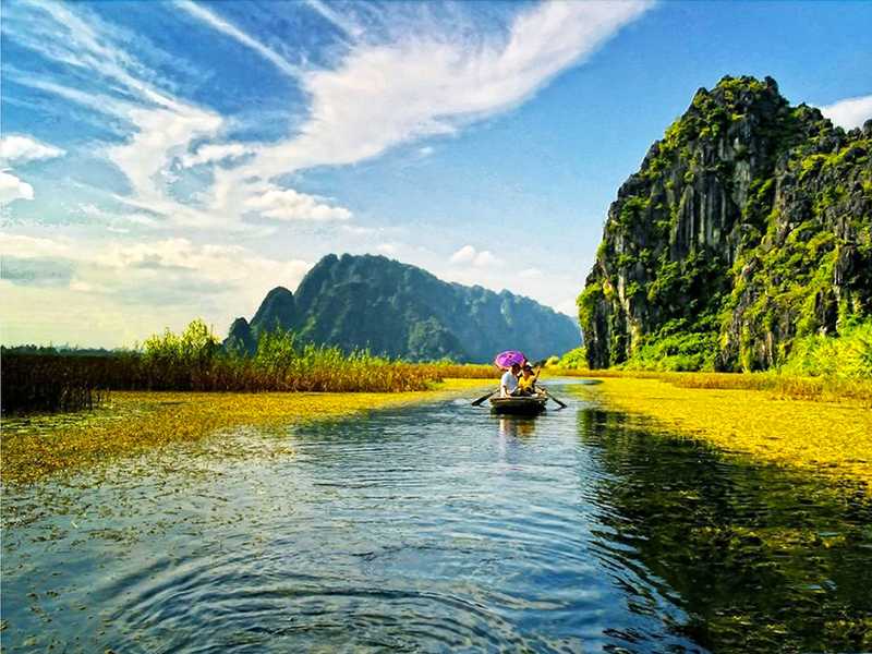 12:50 - 13:00: Get on the tourist bus continue going to Trang An wharf, take boat trip to visit Trang An cave complex and the scene of King Kong film.